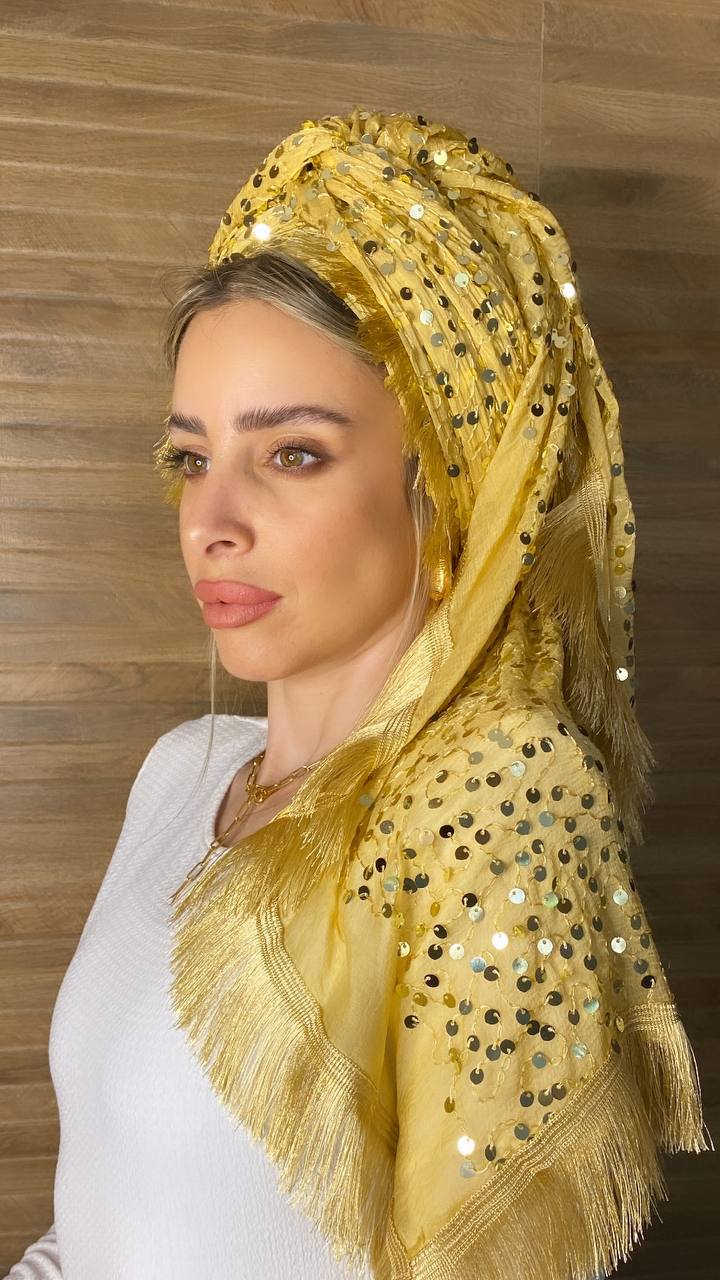 מטפחת פייטים עם פרנזים מסביב למטפחת.